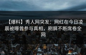 今日凌晨,一则震撼的爆料消息从秀人网传出,某知名网红因参与一起引发广泛关注的事件而被曝光。这一爆料瞬...