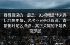 藏得最深的一层是:91视频反转来得比想象更快,这次不只是热度高,直接把讨论区点燃,真正关键的不是表面那层