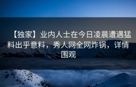 【紧急】业内人士在傍晚时刻遭遇丑闻窒息,秀人网全网炸锅,详情速看